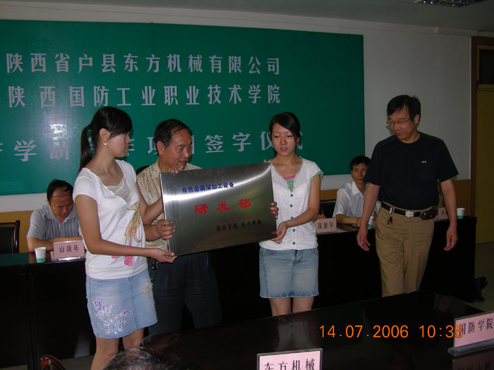 2006年7月14日,公司和陕西国防工业职业技术学院产学研合作举行签约仪式